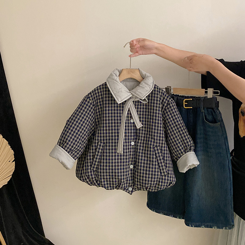 女童棉服2025新款儿童洋气两面穿夹棉冬装外套百搭牛仔裤两件套