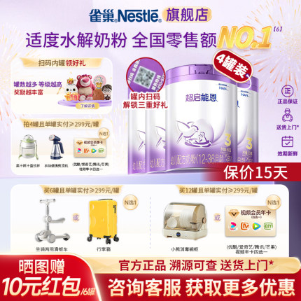 【补贴】雀巢超启能恩3段奶粉适度水解蛋白奶粉850g*4罐正品
