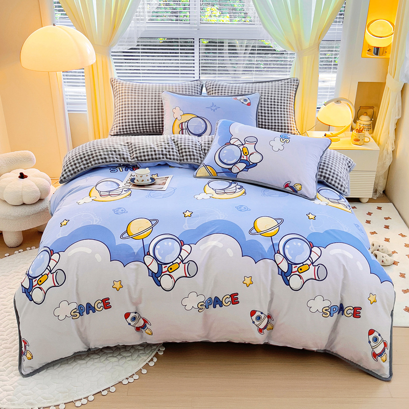 ab面全棉加绒儿童四件套被套单件卡通男女孩小汽车被罩180220240