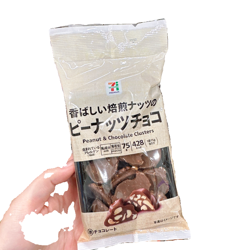 日本711便利店零食 浓郁花生坚果风味巧克力脆块75g
