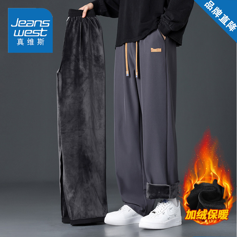 真维斯美式直筒休闲裤男款秋冬季加绒加厚防寒阔腿宽松百搭长裤子