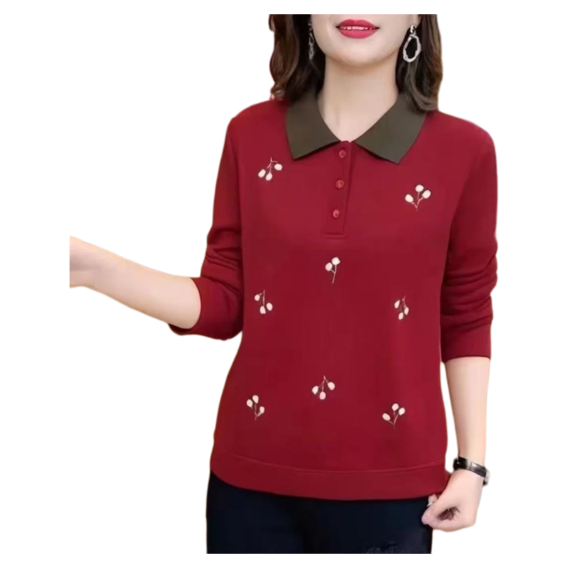 2026秋冬新款女士宽松显瘦减龄翻领长袖T恤时尚气质印花中年妈妈