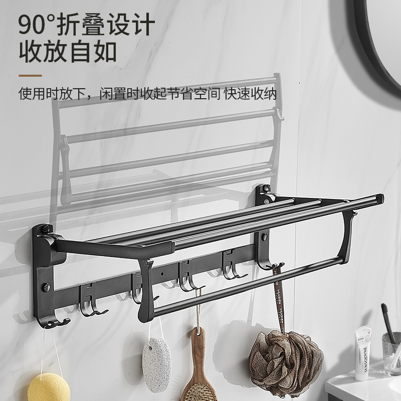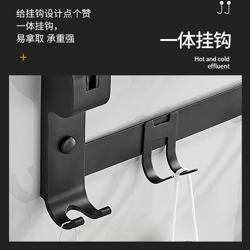 浴室黑色不锈钢毛巾架免打孔卫生间洗手间厕N所卫浴置物架壁挂套