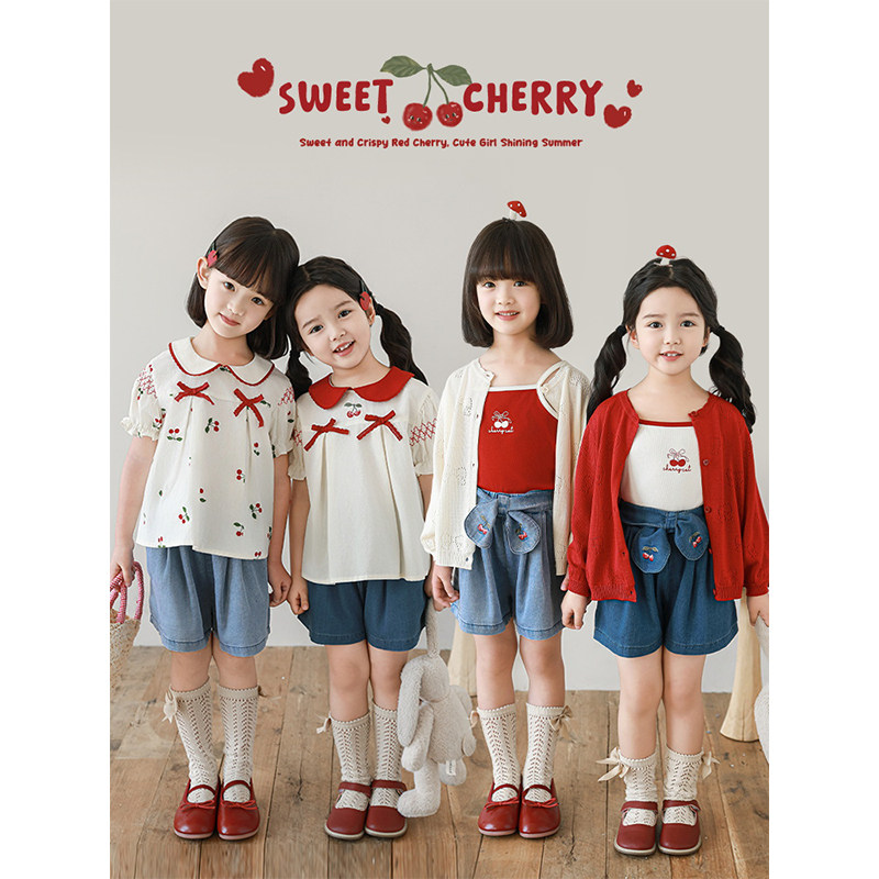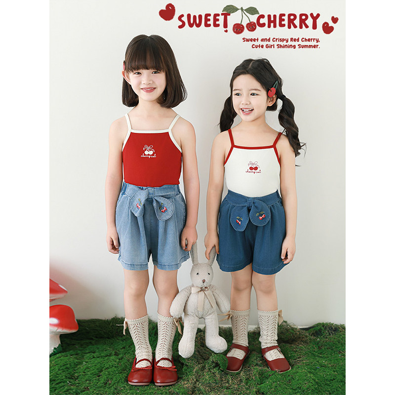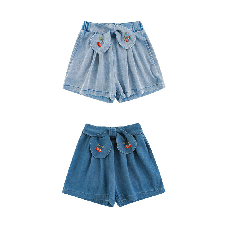 幼悠女童樱桃刺绣牛仔短裤夏季洋气可爱轻薄透气宽松清凉五分裤子