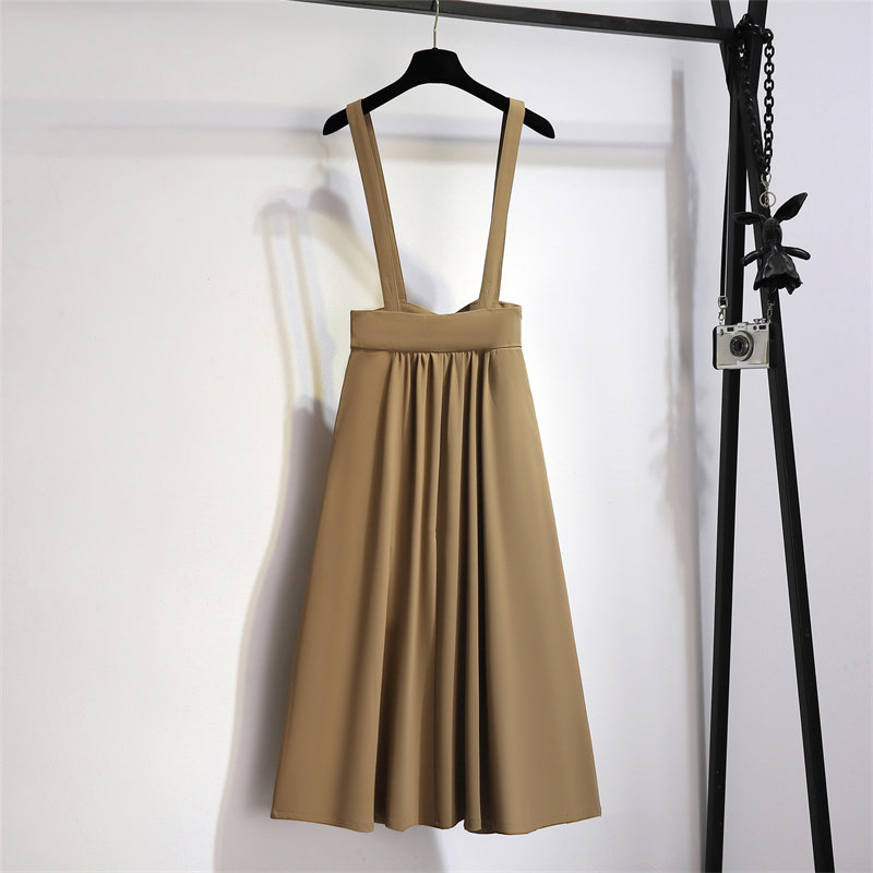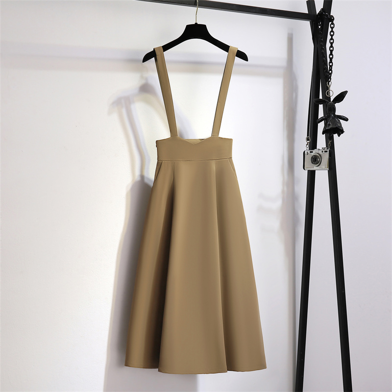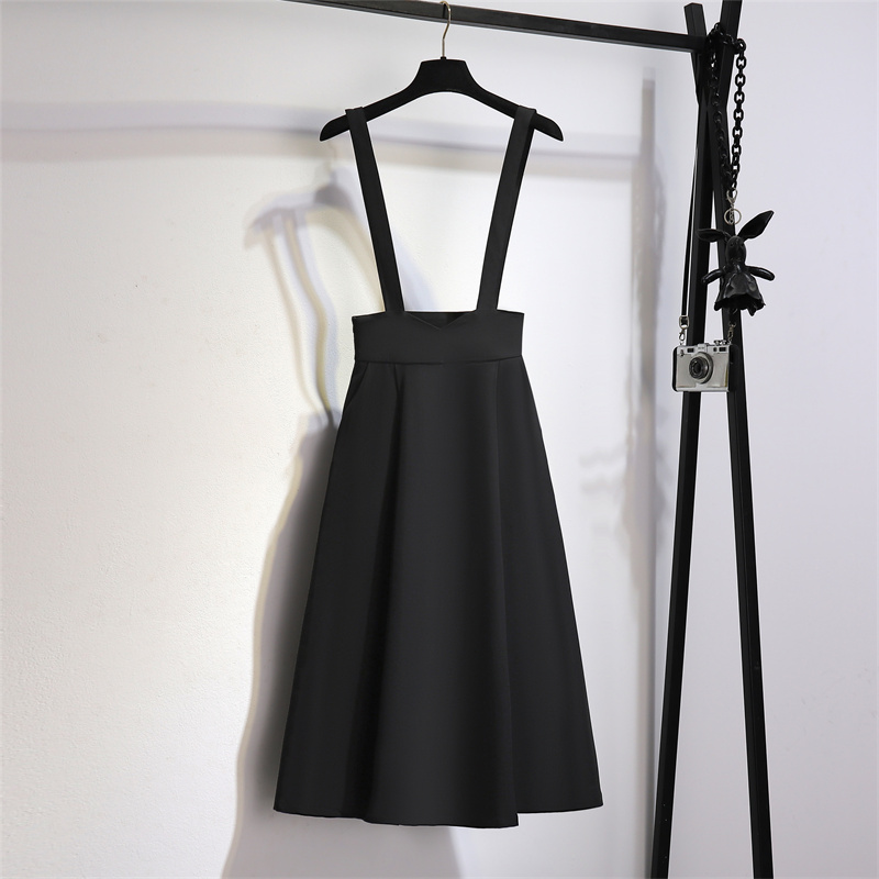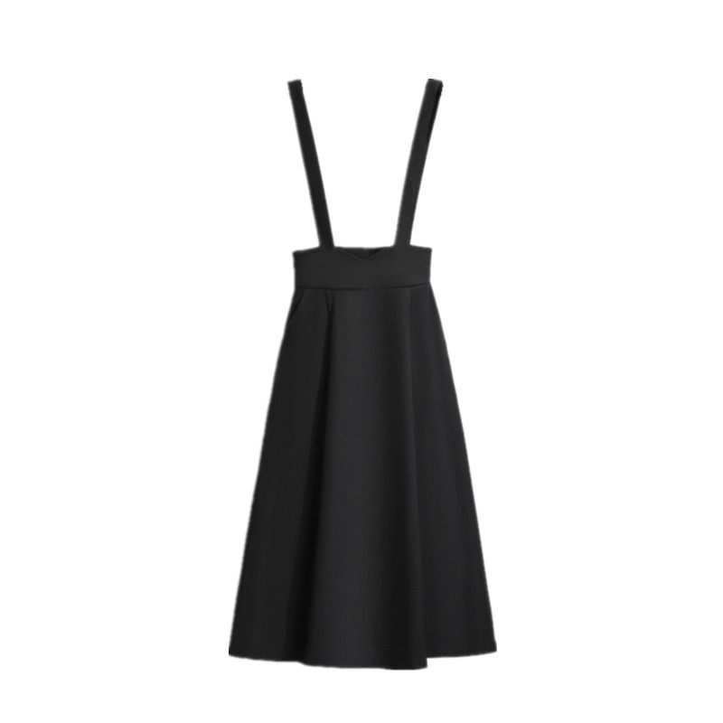 设计感背带裙女中长款西装裙夏季显瘦高腰a字伞裙垂感黑色半身裙