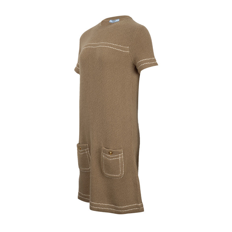 普拉达女士纯色羊绒短袖连衣裙