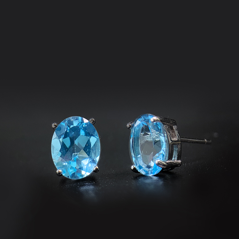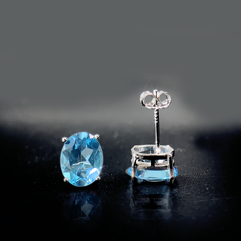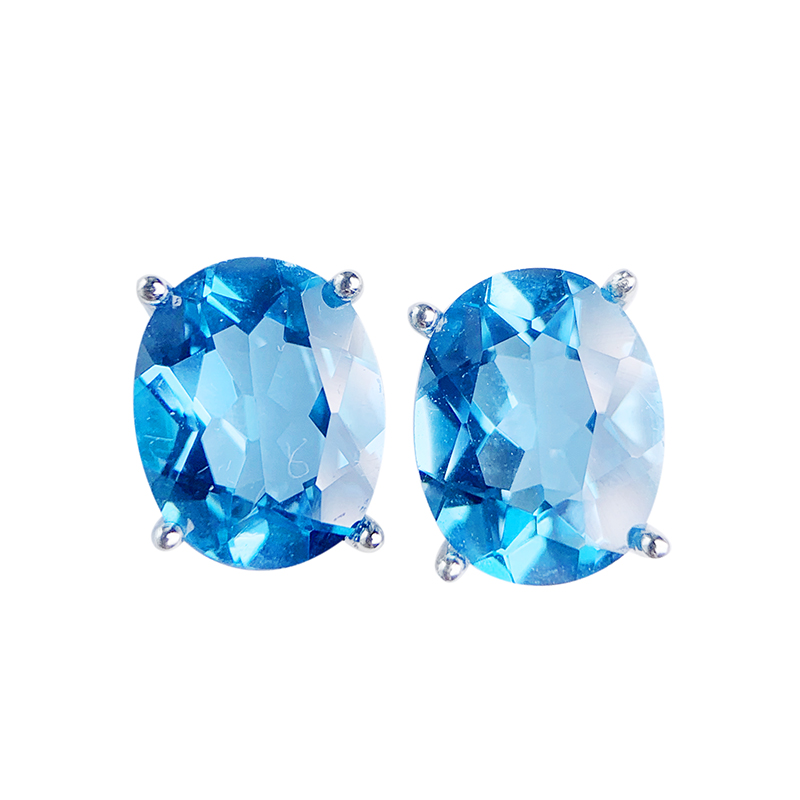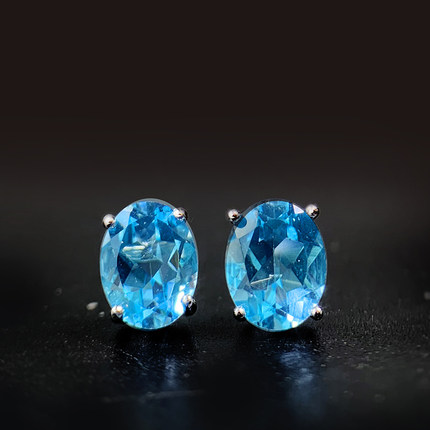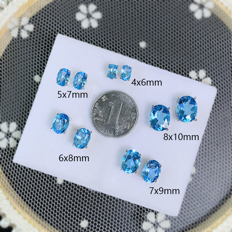 基础款天然托帕石耳钉S925纯银多规格简单四爪海蓝宝色耳饰百搭女
