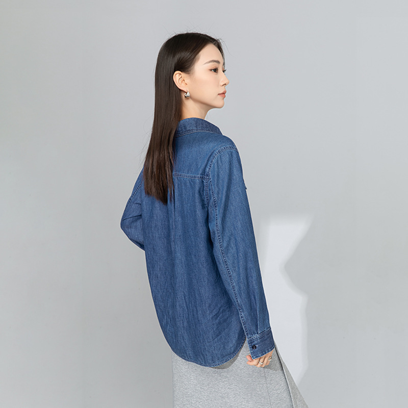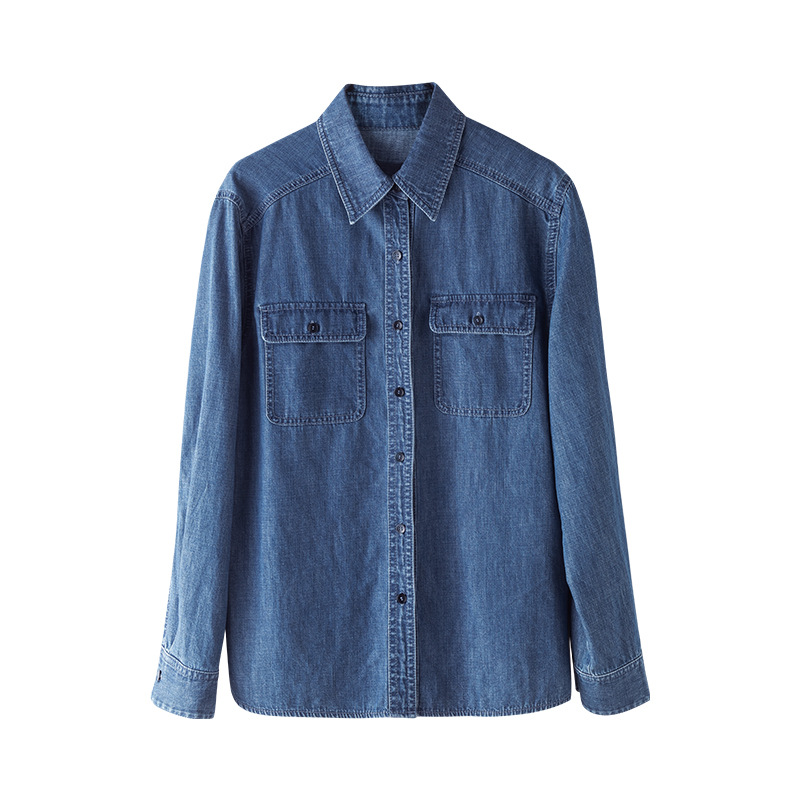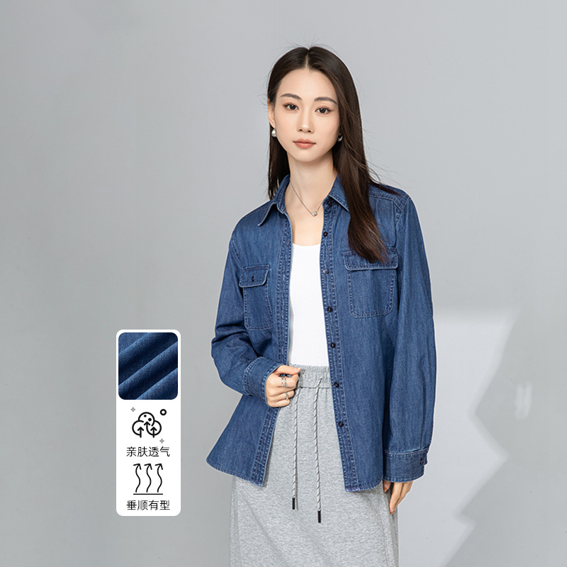 忆霏休闲宽松牛仔衬衫女2025秋季新款垂顺透气内搭叠穿长袖衬衣