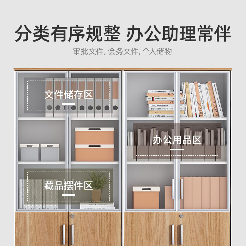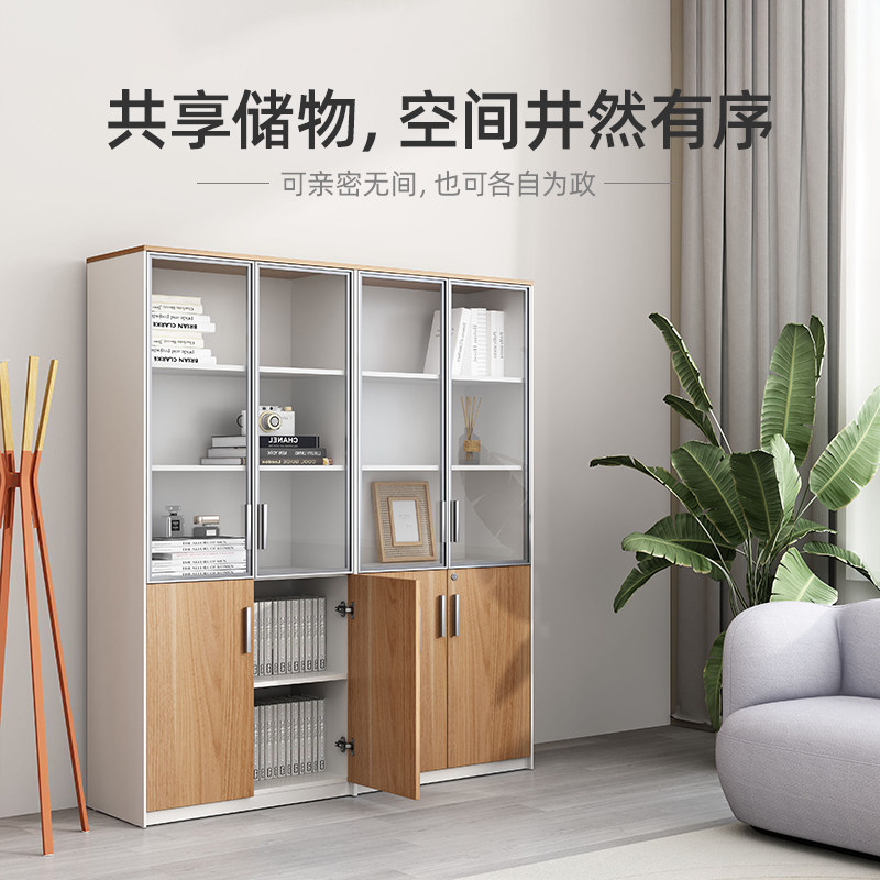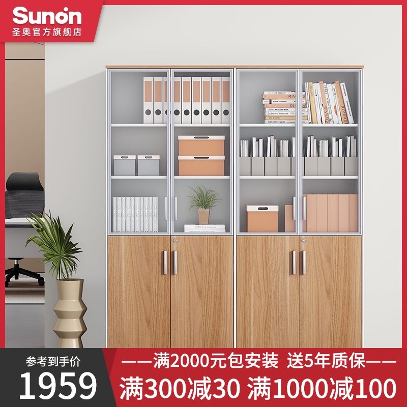 圣奥办公家具 现代简约玻璃开门书柜 带锁办公储物柜资料文件柜子