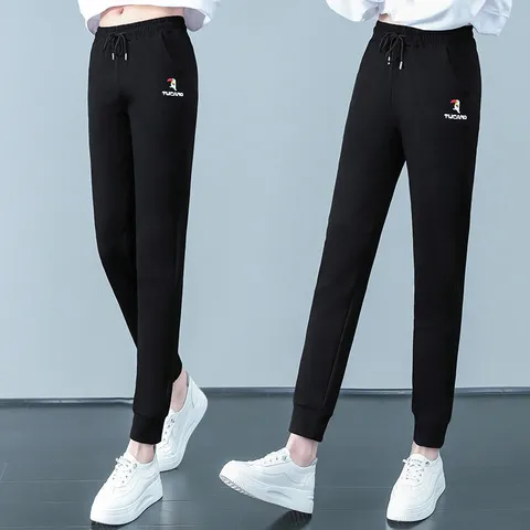 铅笔运动裤长裤卫裤小脚裤高腰显瘦腿纯棉春秋弹力女束脚休闲遮肉