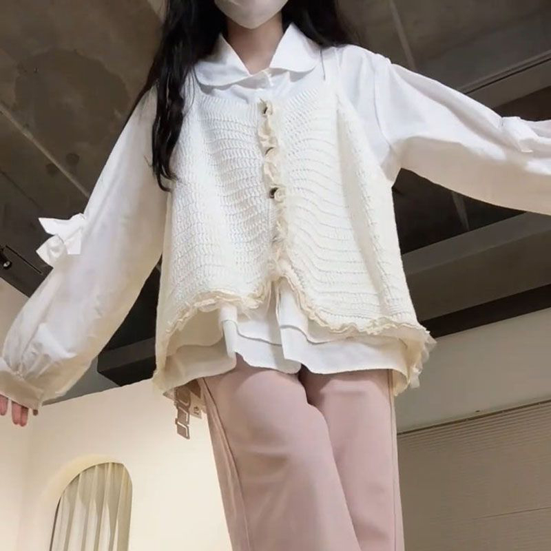 2025秋季新款韩系通勤百搭长袖衬衫女学生搭配针织吊带开衫两件套