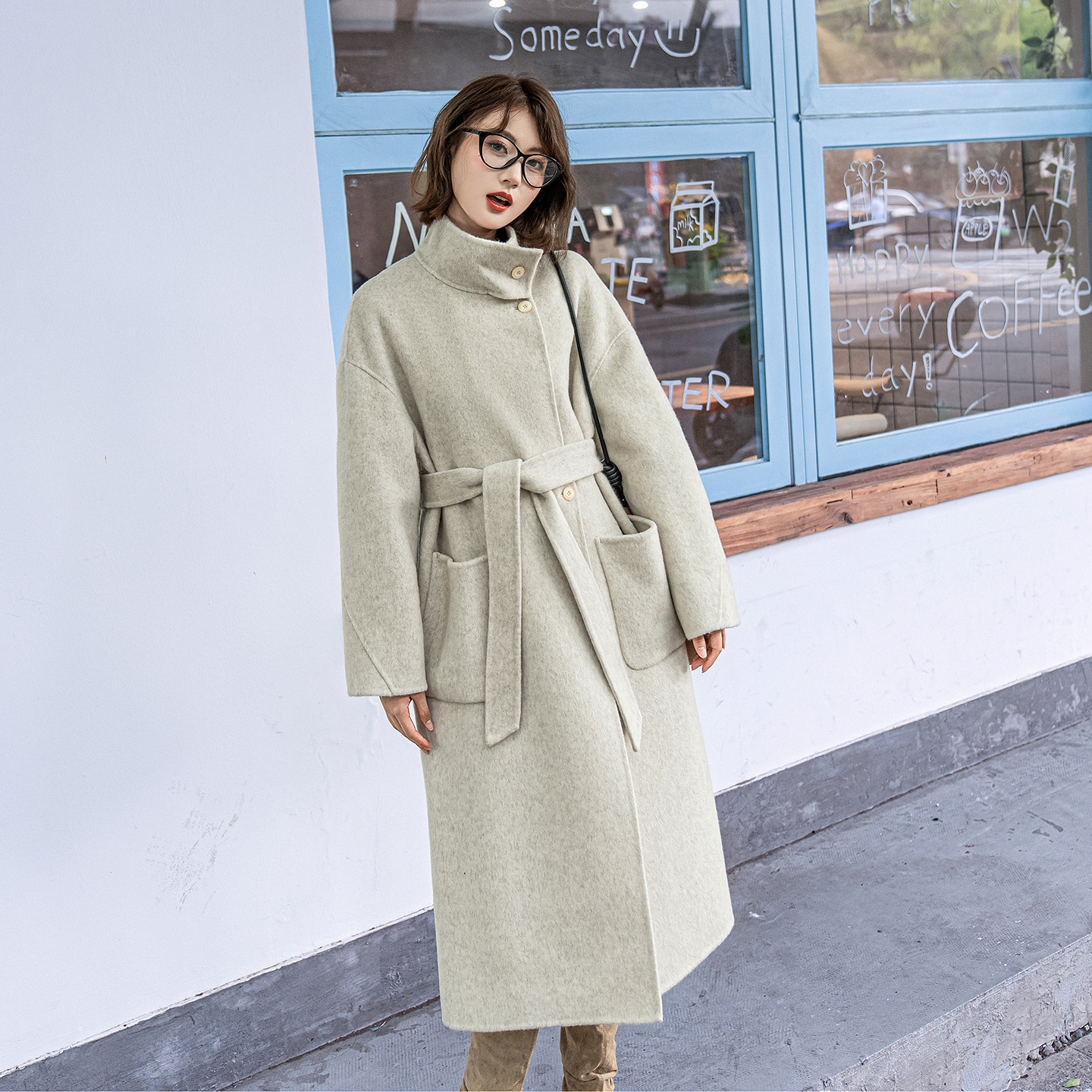 韩版2025年秋冬新款立领双面羊绒大衣女中长款高级感显瘦毛呢外套