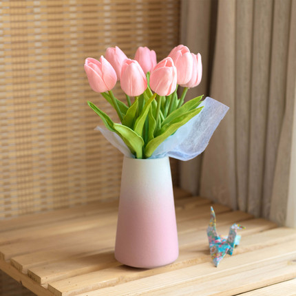 郁金香客厅房间花+花瓶好看耐久