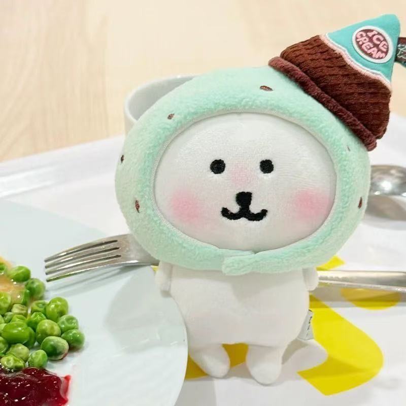 马卡龙冰激凌头套chiikawa10cm玩偶薄巧体棉花娃衣自嘲熊帽子挂件
