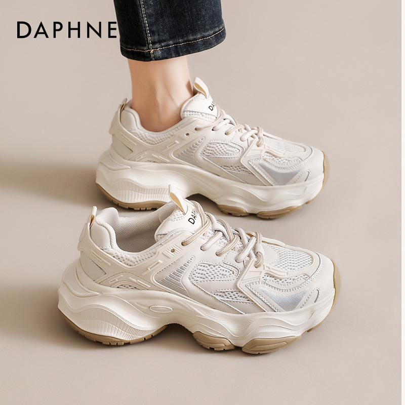 达芙妮老爹鞋女款厚底女鞋秋季2025新款米色轻便小白鞋增高运动鞋