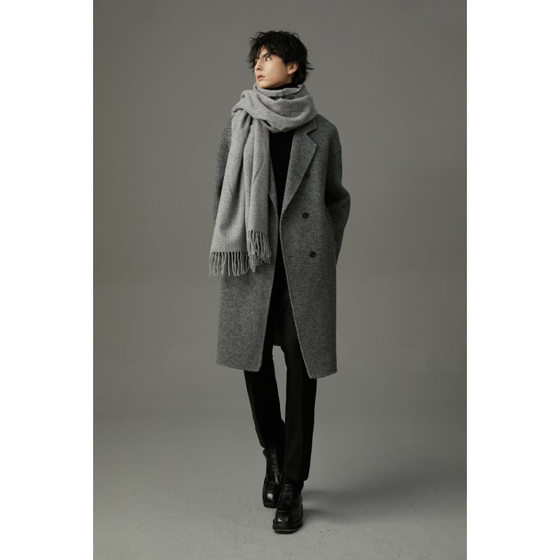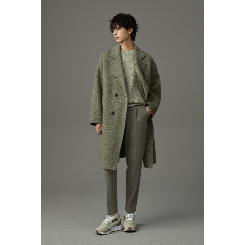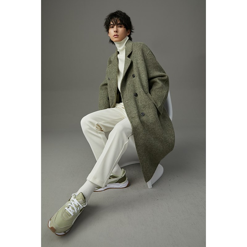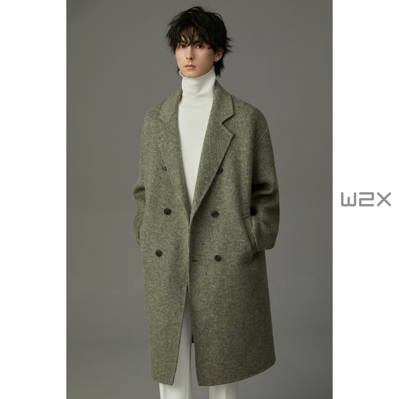 w2x秋冬季肌理感羊毛双面毛呢大衣男中长款宽松廓形妮子风衣外套