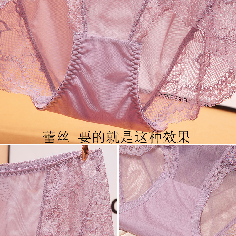 蕾丝内裤女夏季中高腰透明性憾新款平角裤大码胖mm女士短裤薄款