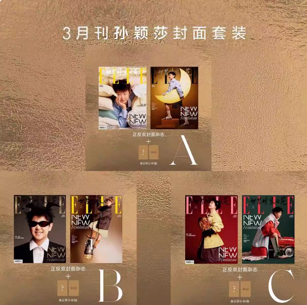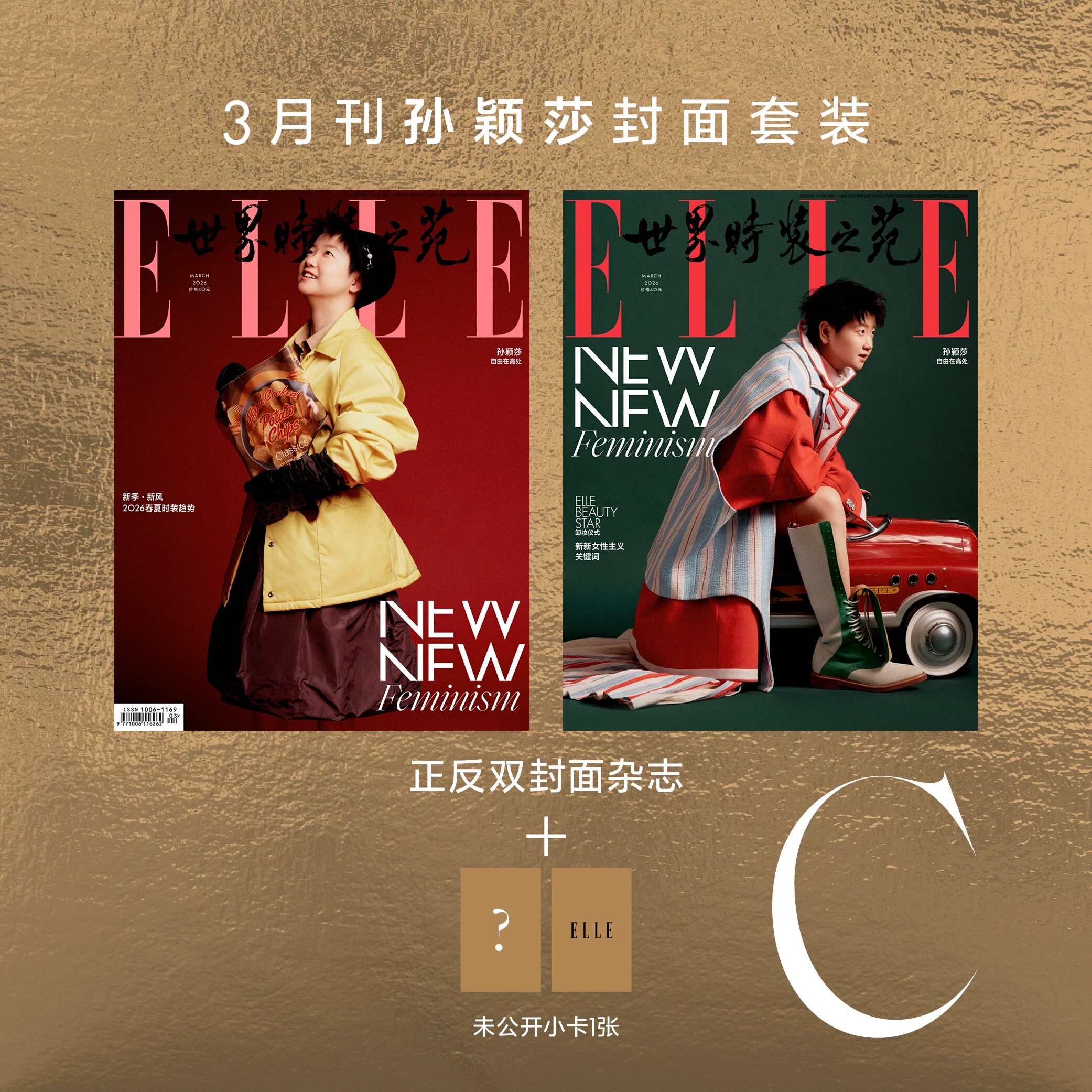 孙颖莎封面官方版ABC套装 计入销量 正版 ELLE 3月 孙颖莎封面 ELLE世界时装之苑杂志2026年3/三月 孙颖莎封面 开季刊 华道时尚