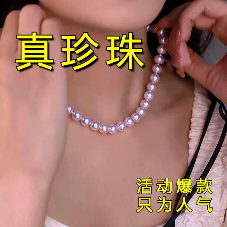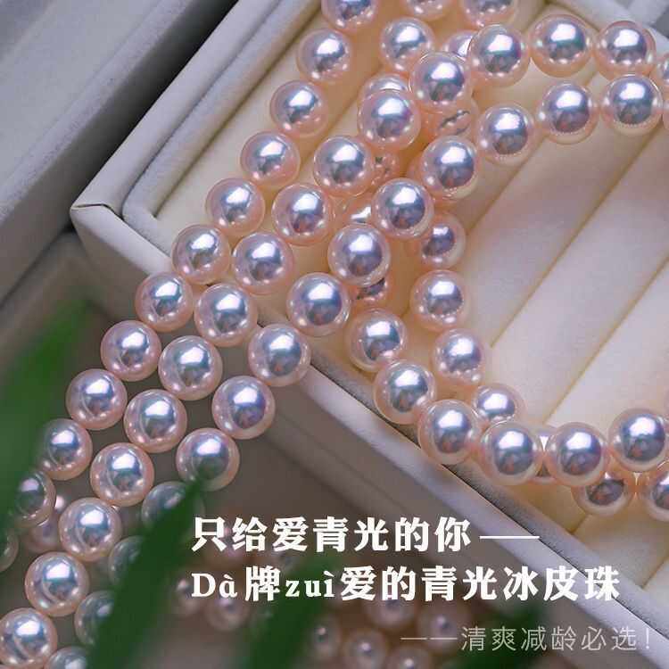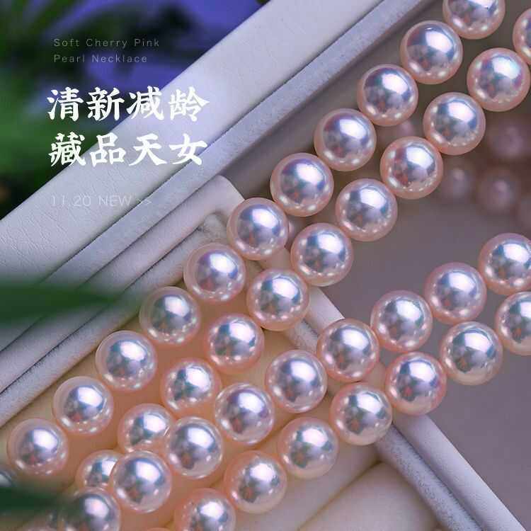 8-10mm天然海水珍珠项链日本AKOYA樱花粉色珠链送妈妈女朋友礼物