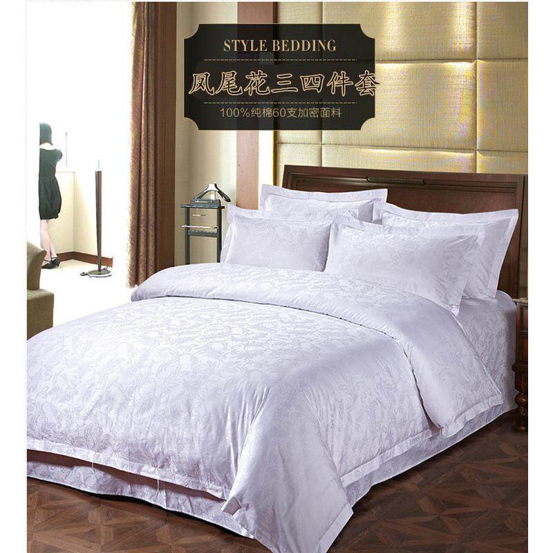 安翔五星级四件套布草酒店白色宾馆床上用品贡缎提花被套床单
