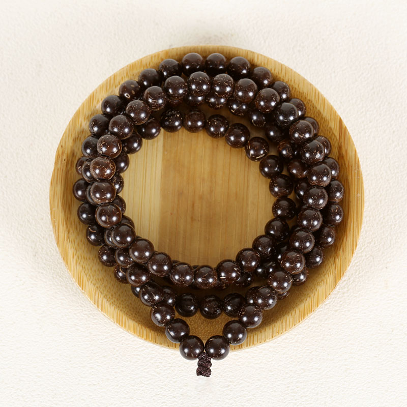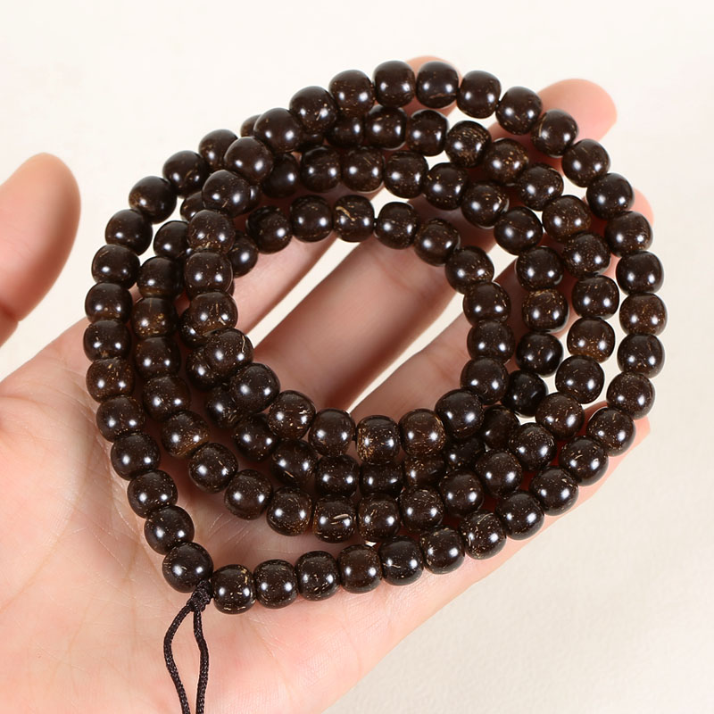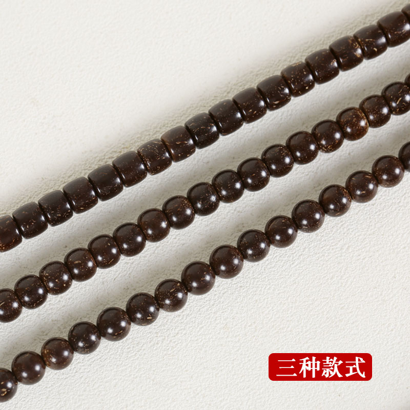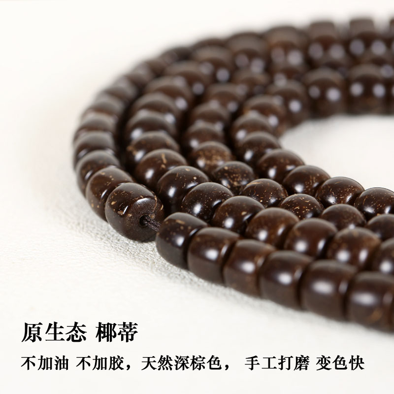 原生态印尼椰蒂108颗佛珠手工精抛光手串老形型桶圆珠直切归圆