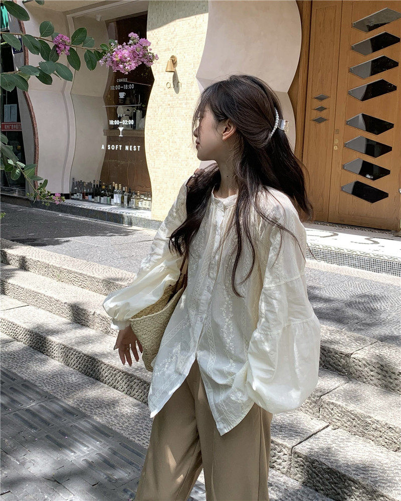 法式设计感蕾丝刺绣衬衫女春秋2026新款休闲宽松长袖衬衣气质上衣