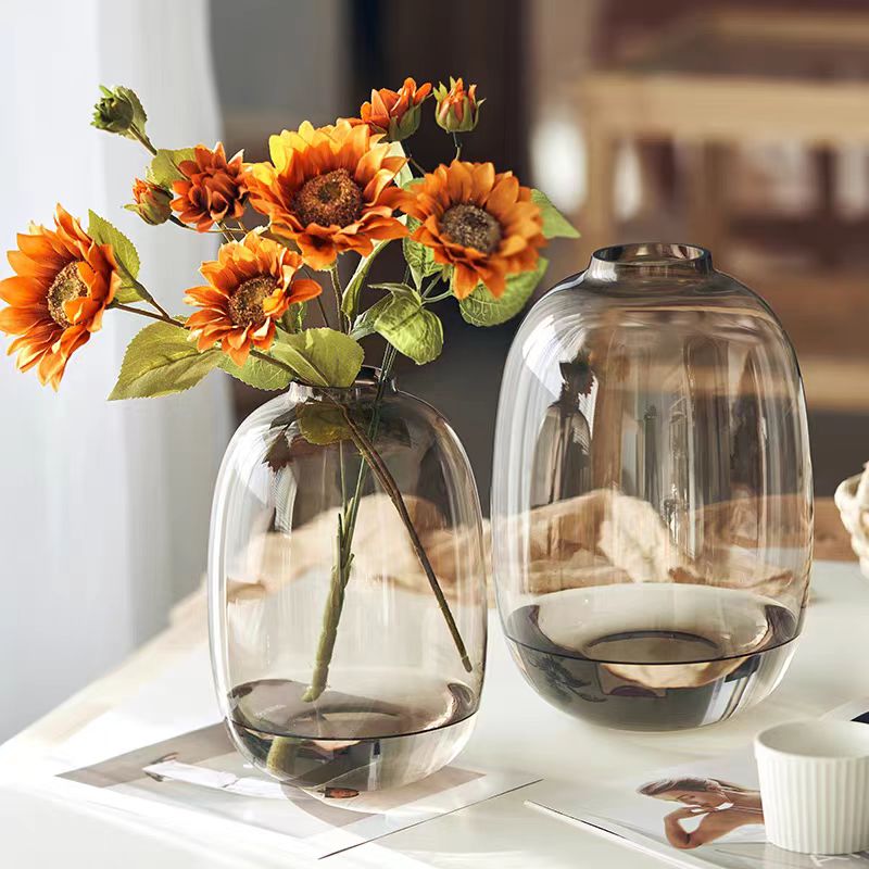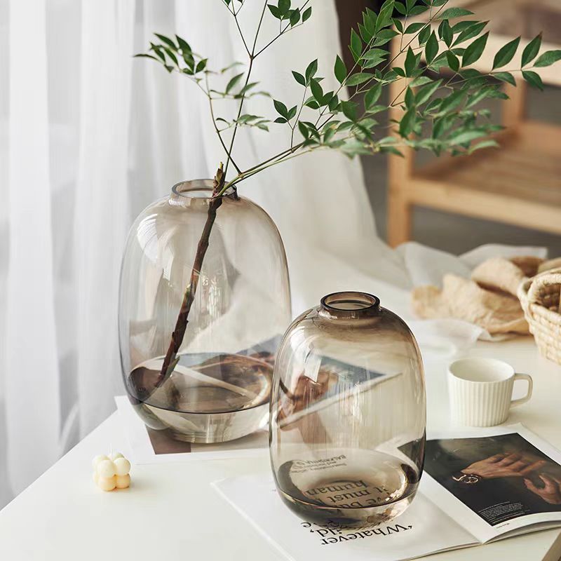 简约高级感玻璃花瓶摆件水培吊钟雪柳马醉木客厅鲜花插花落地装饰
