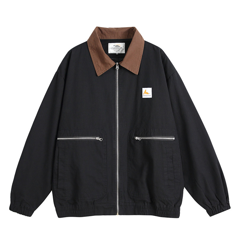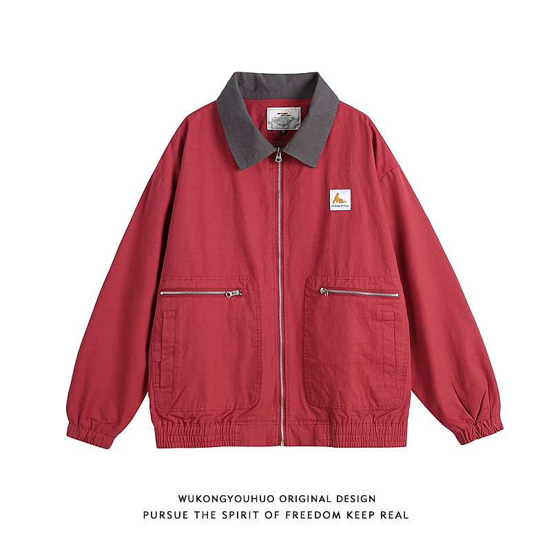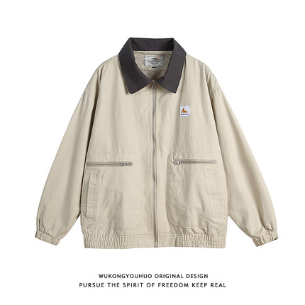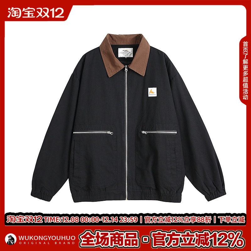 悟空有货潮牌复古撞色底特律翻领夹克男美式宽松百搭情侣工装外套