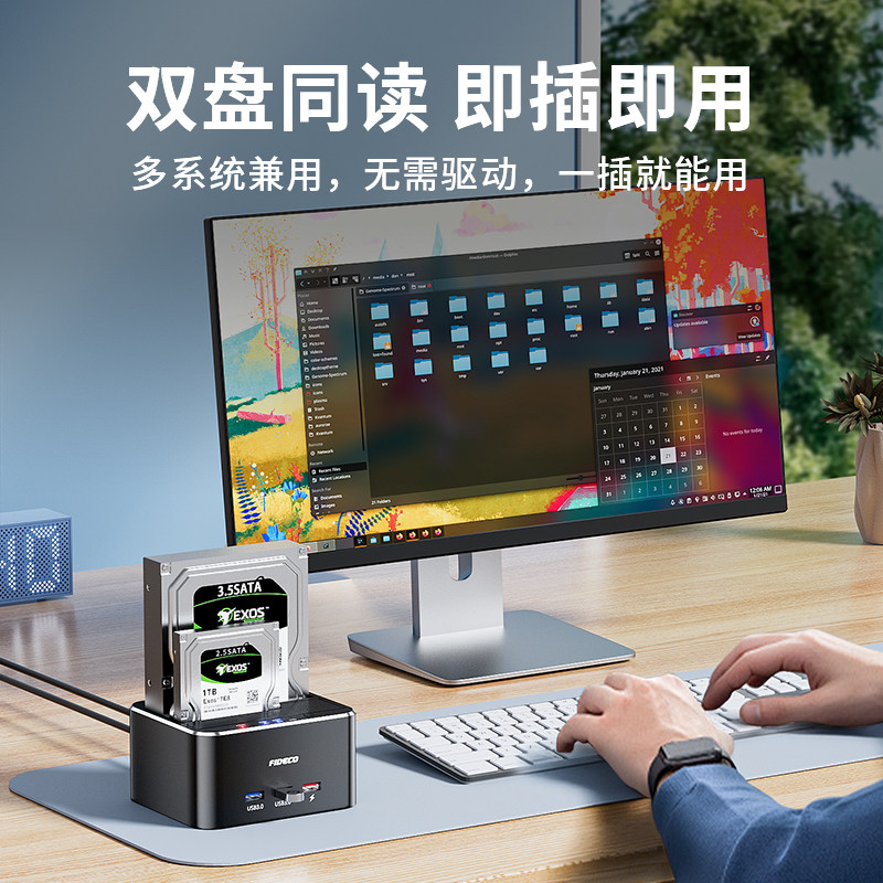 诚和德机械硬盘盒外接3.5寸台式移动usb外置固态读取器双盘位底座