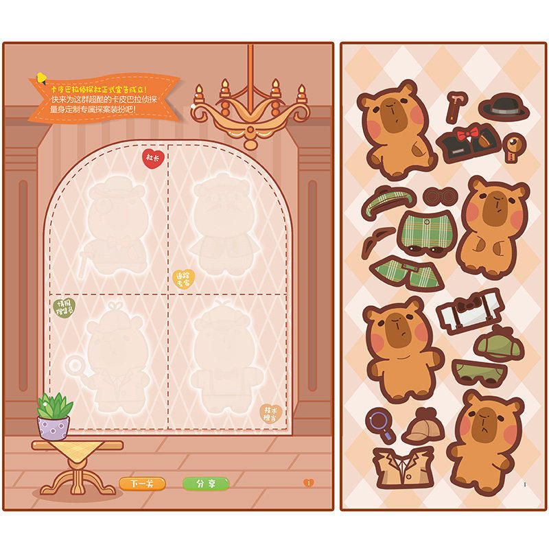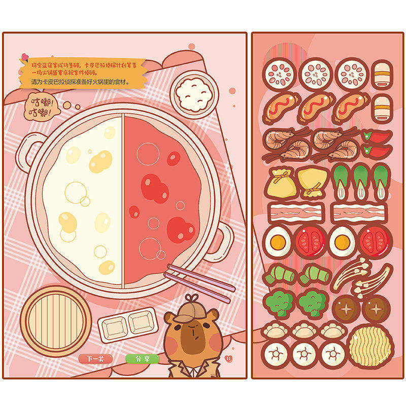 卡皮巴拉闯关贴纸游戏超市闪击萌探迷案2册3-5-6岁幼儿专注力思维能力培养贴纸书趣味闯关大挑战游戏书可爱水豚粘贴画创意拼图正版