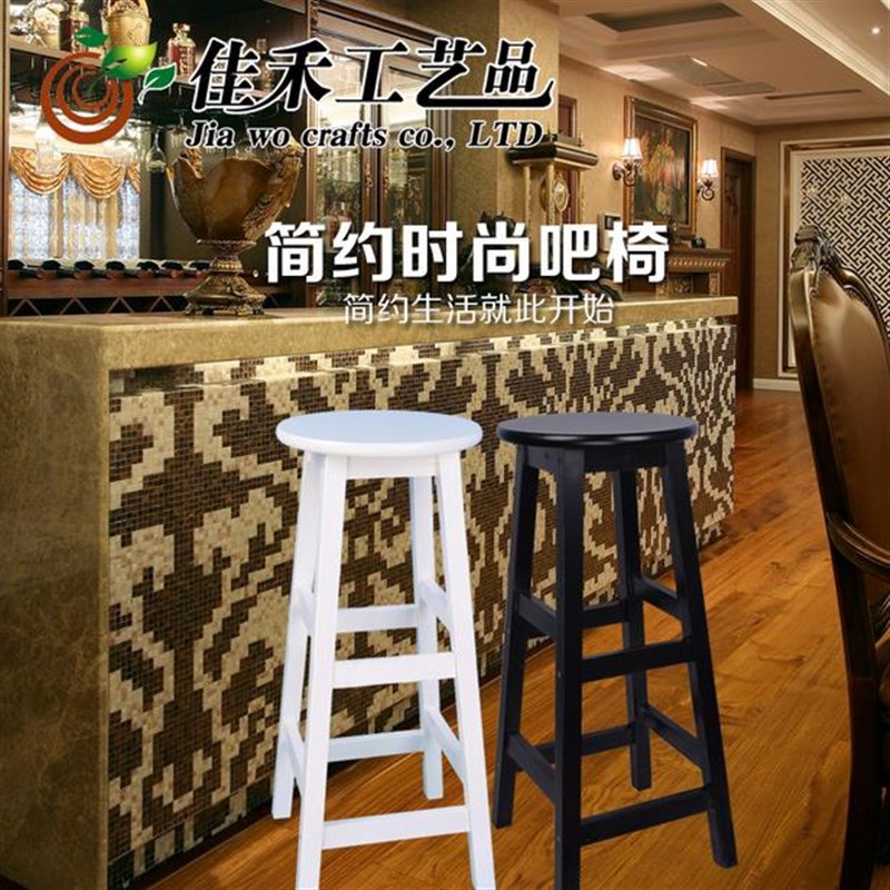 实木吧椅简约吧台椅吧台凳家用高脚凳欧式酒吧高脚椅奶茶店圆凳子