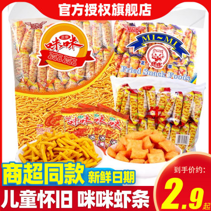 爱尚咪咪虾味蟹味粒80包网红薯片条好吃的零食宿舍休闲小吃大礼包