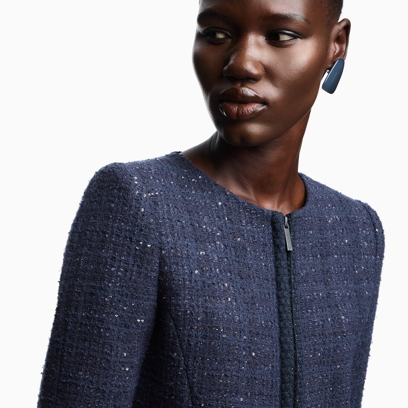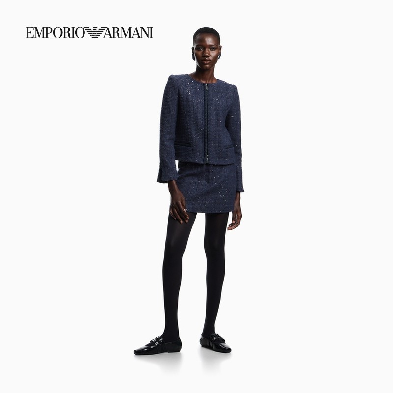 阿玛尼女士短款圆领拉链西装外套