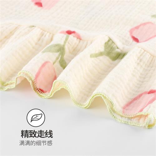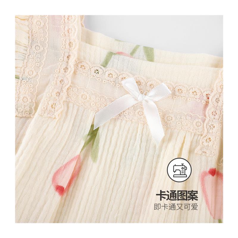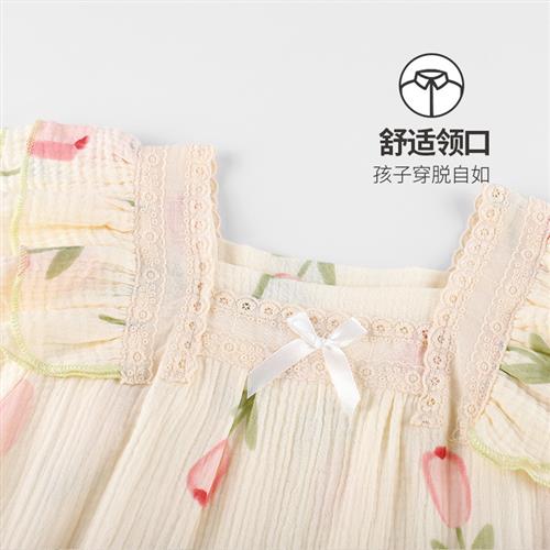 2024新款女童睡裙夏款纯棉纱布短袖儿童小女孩公主风连衣裙家居服
