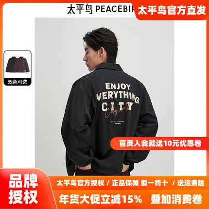 太平鸟男装潮流教练夹克25秋新款印花翻领休闲外套时尚刺绣茄克