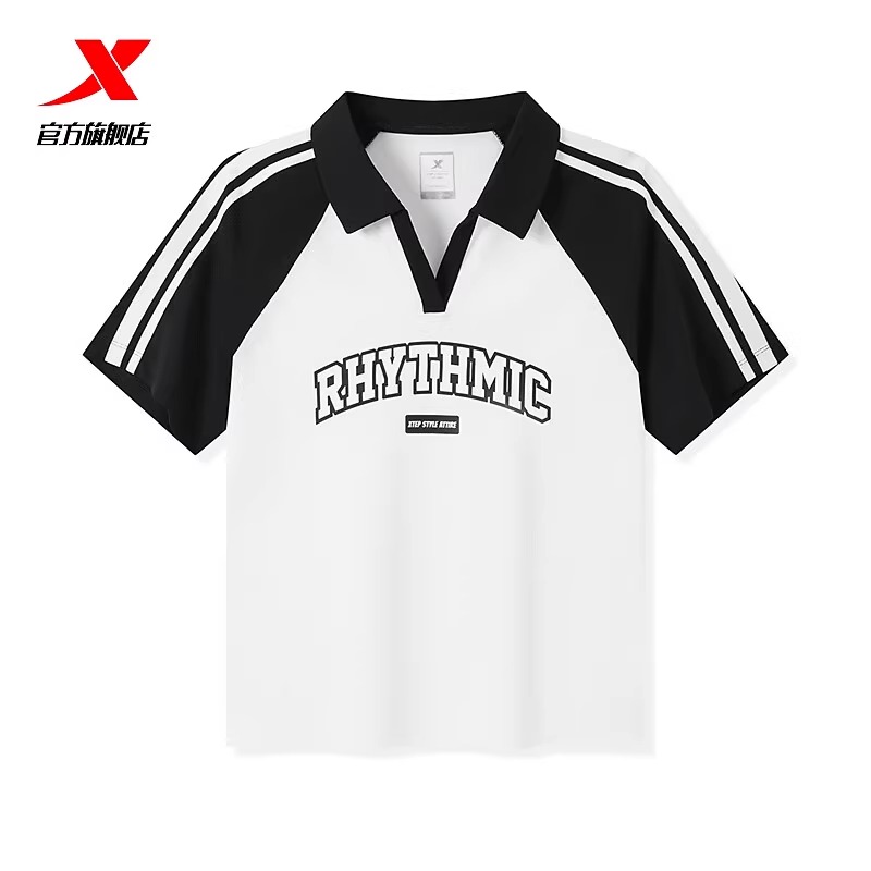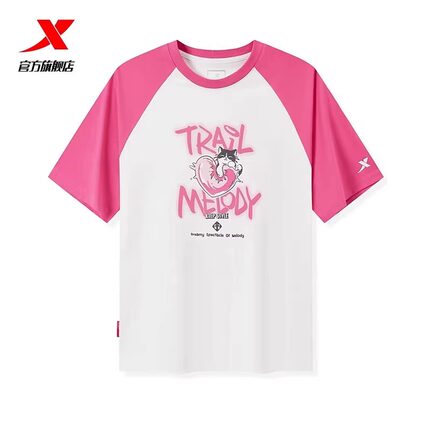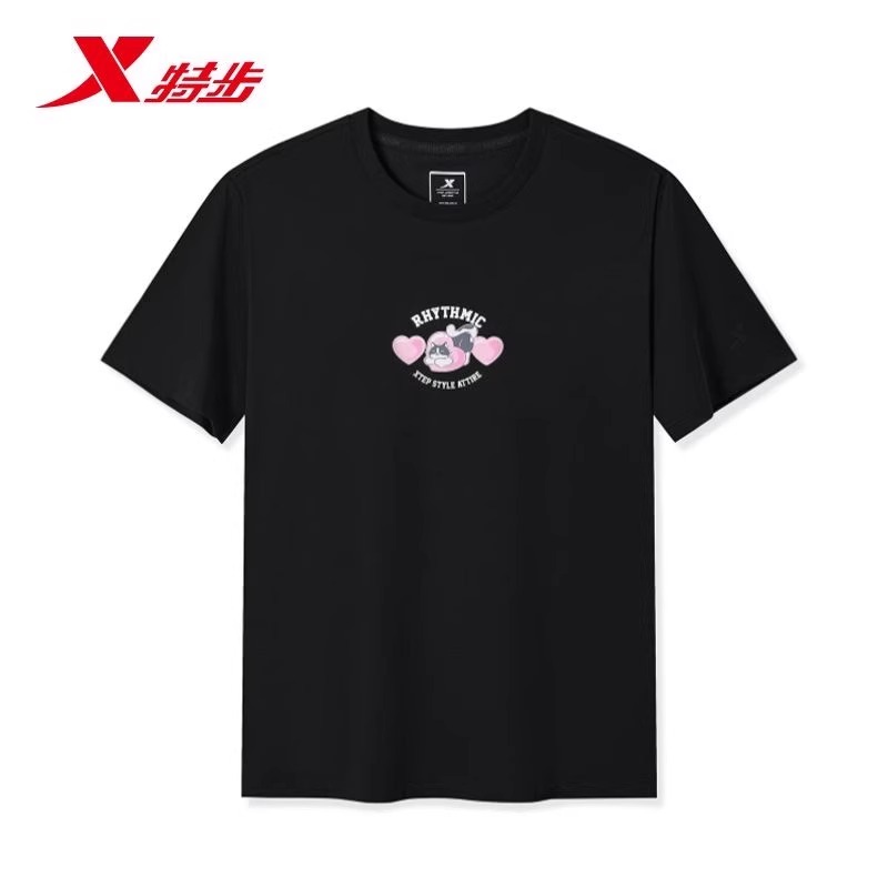 特步可爱小猫印花圆领透气短袖