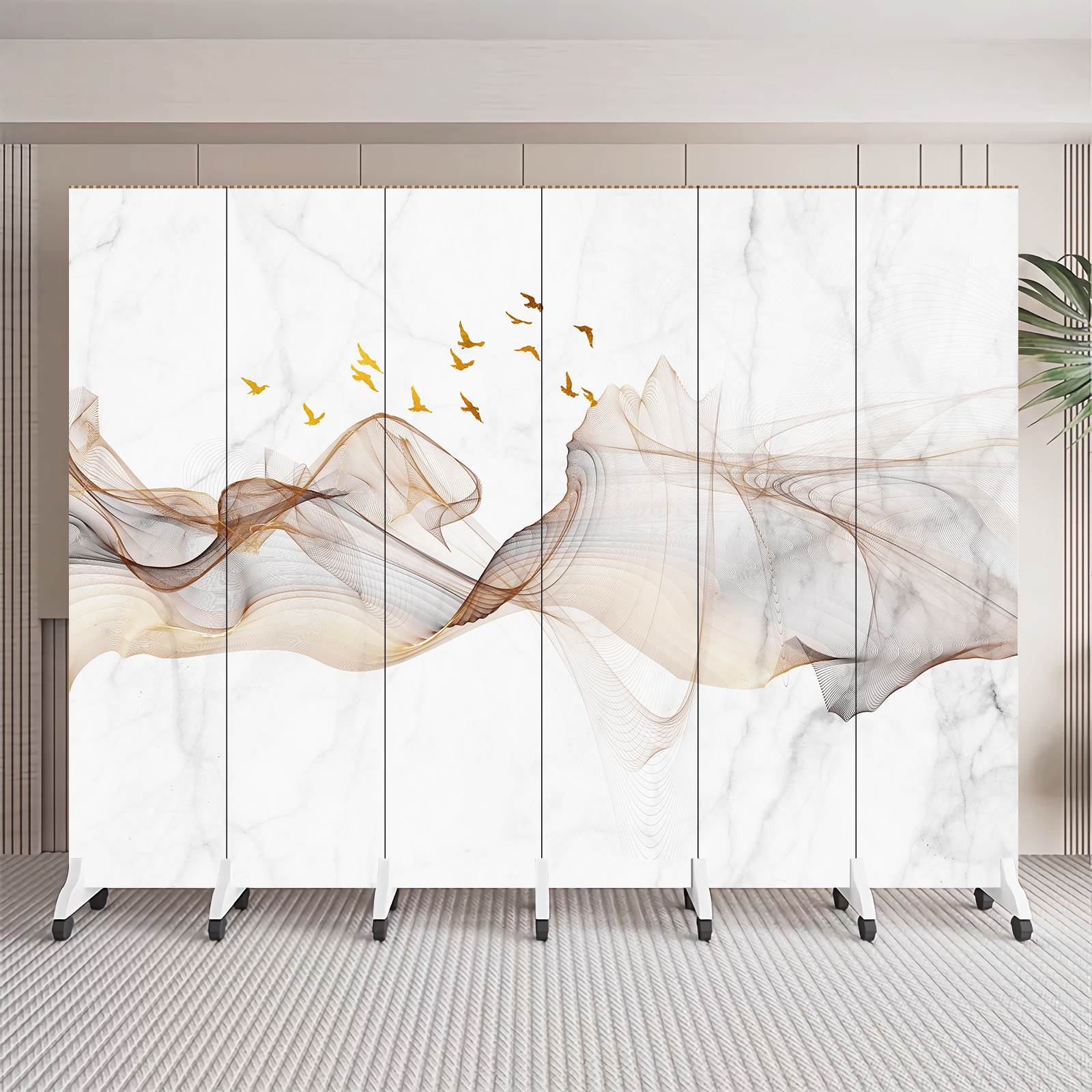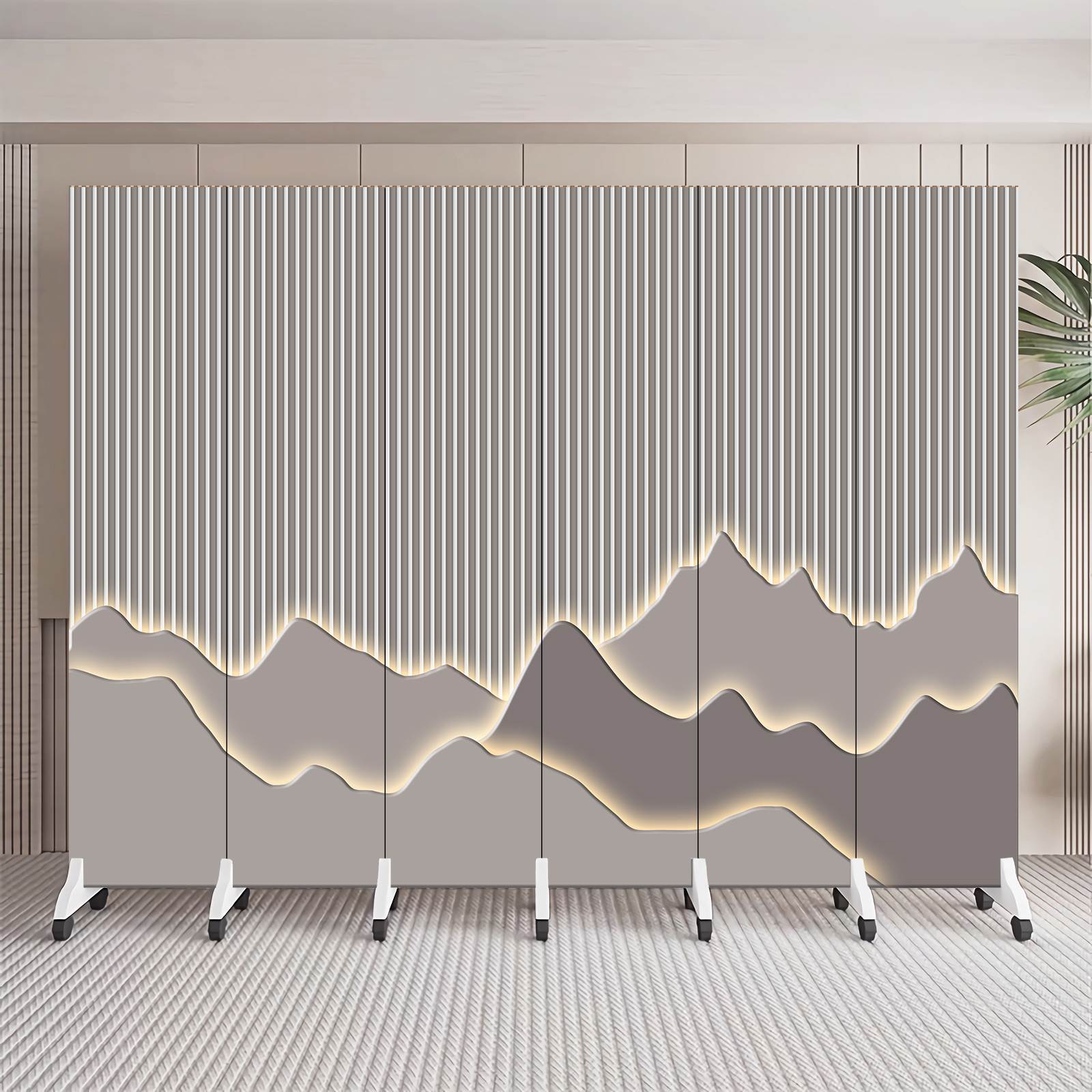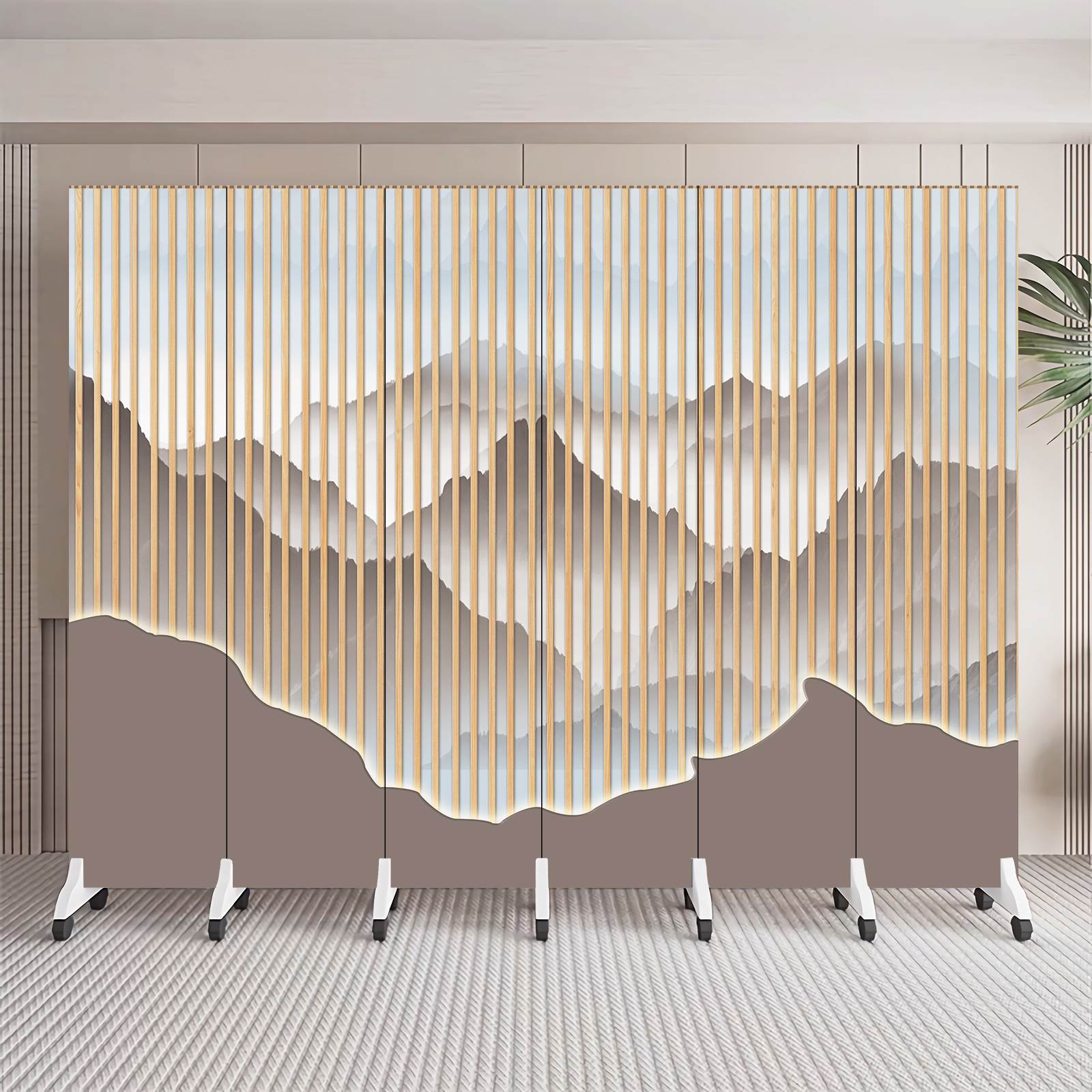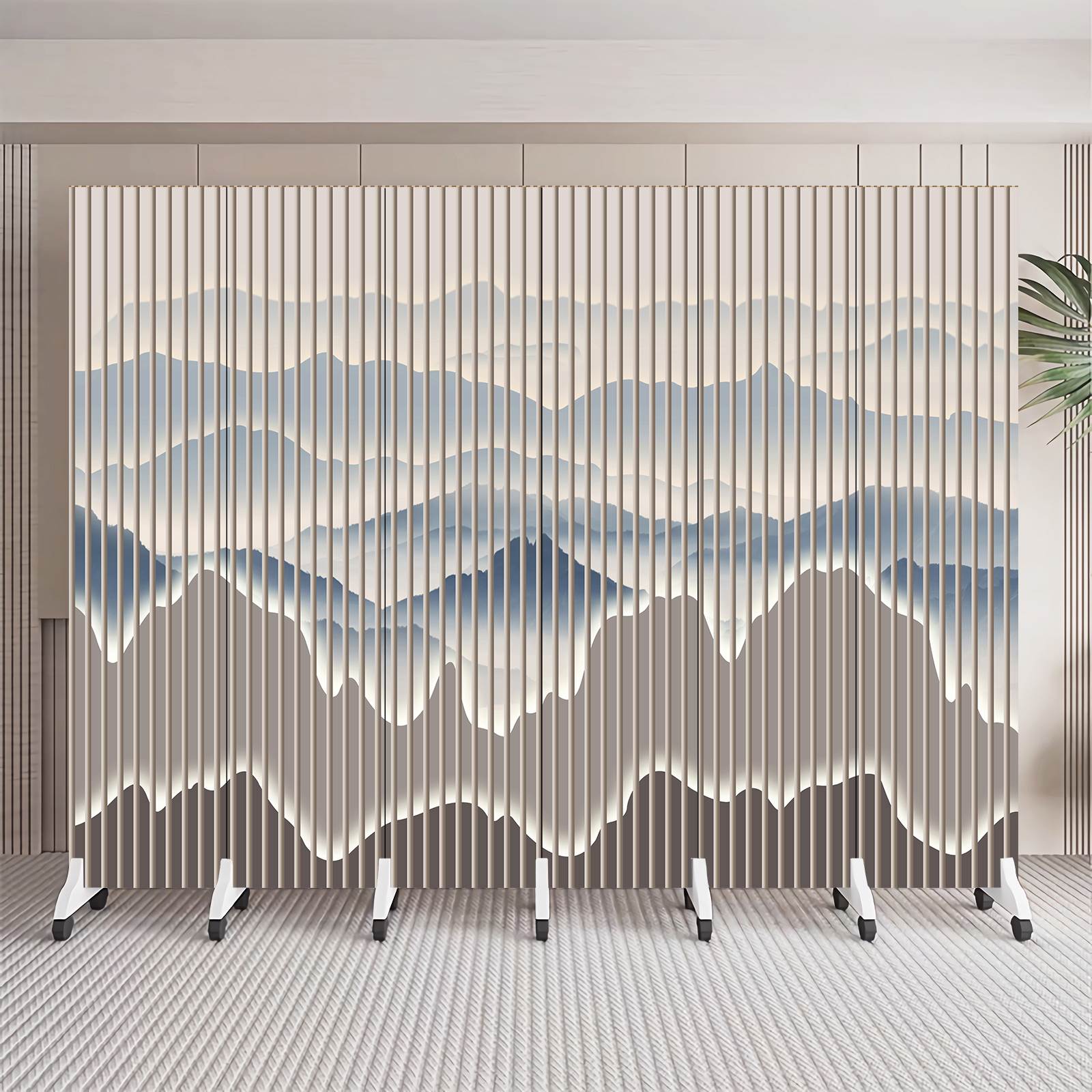 简约现代新中式折叠可移动隔断客厅入户玄关办公室背景墙山水屏风