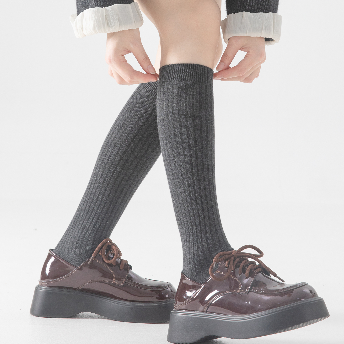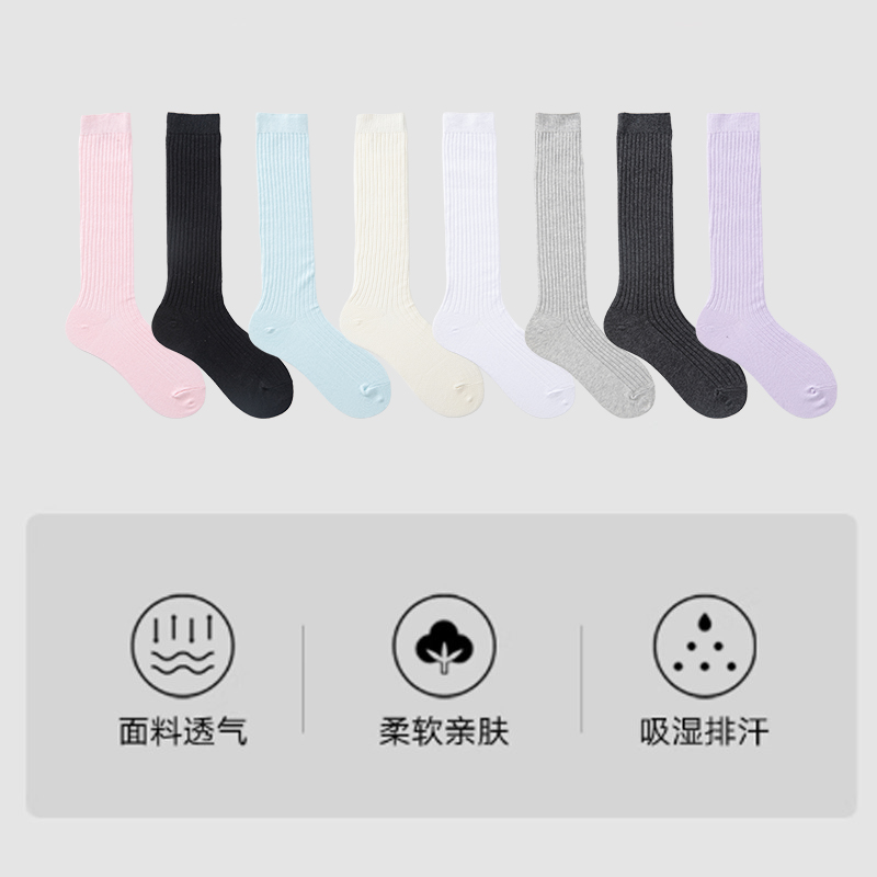 袜子女及膝长筒小腿袜秋日系jk原宿风竖纹蓝色半腿高筒堆堆袜纯棉