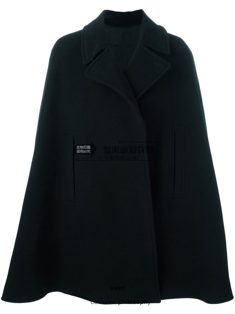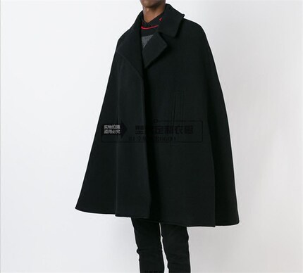 新款冬季潮男男装大衣披风斗篷中长款毛呢学生装风衣呢子加厚外套