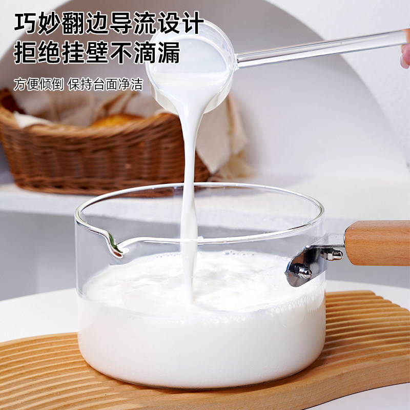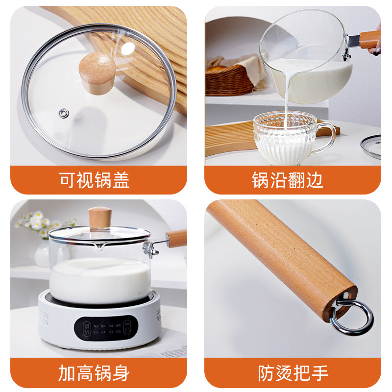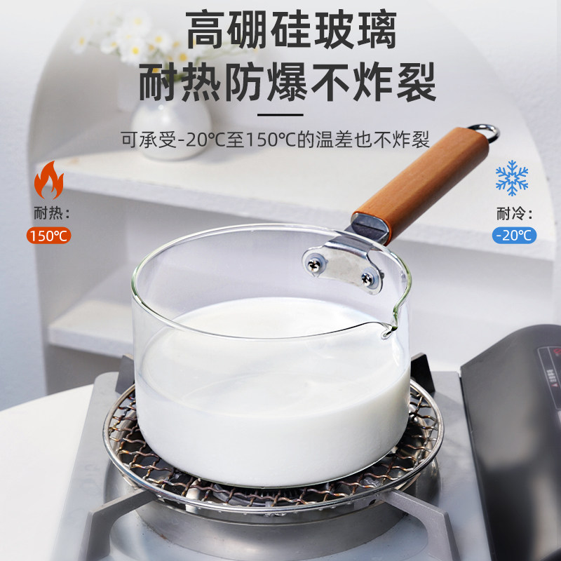 日式透明小煮锅玻璃奶锅耐高温汤锅辅食锅煮面锅家用热牛奶泡面锅