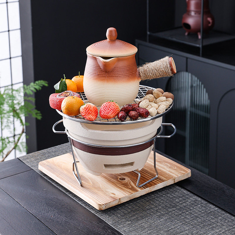 围炉煮茶器具全套老式陶土炭火炉打边炉室内户外烧烤炉烤奶罐罐壶