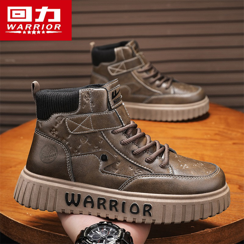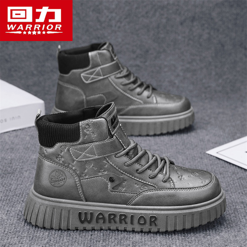 回力高帮男鞋2025新款秋季复古马丁靴英伦风厚底增高耐磨工装板鞋