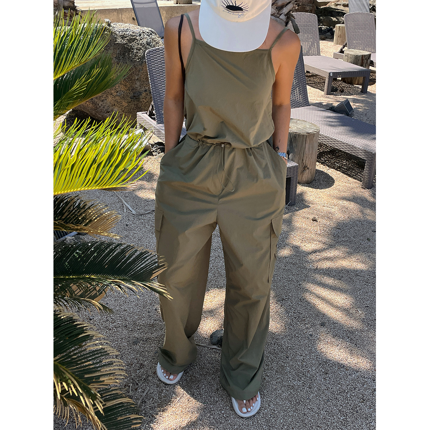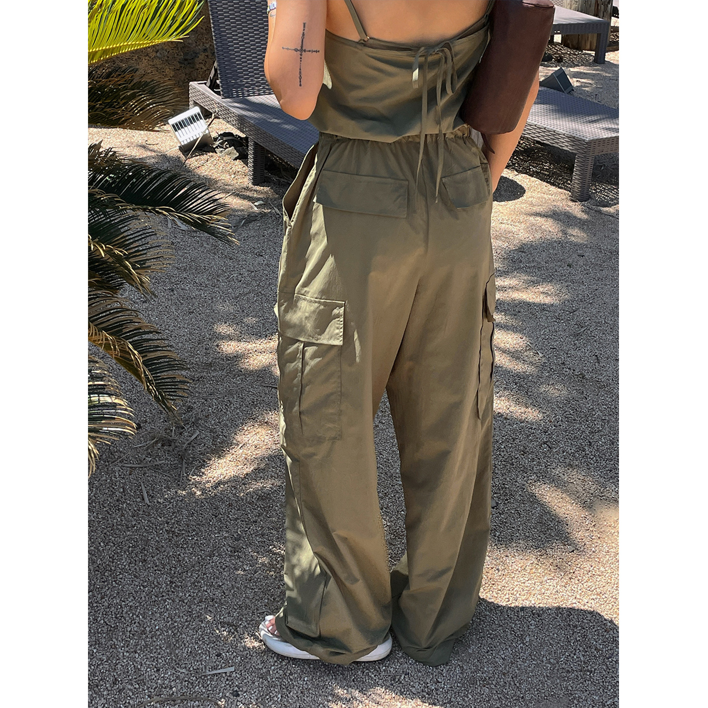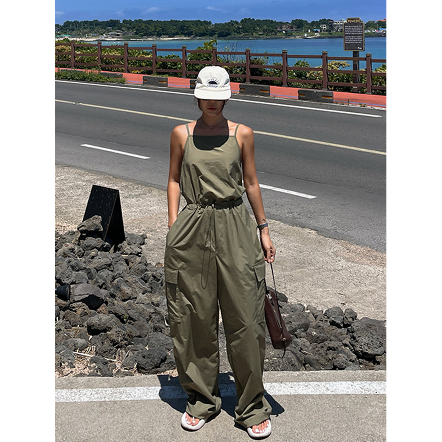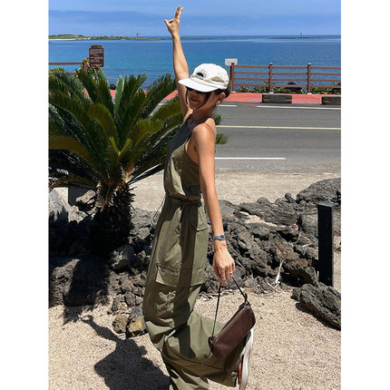 鬼鬼家正品韩代东大门 25工装风时髦后背系带松紧腰吊带连衣长裤