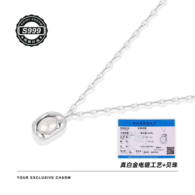 999纯银珍珠项链女气质简约ins冷淡风不规则吊坠设计感锁骨链配饰