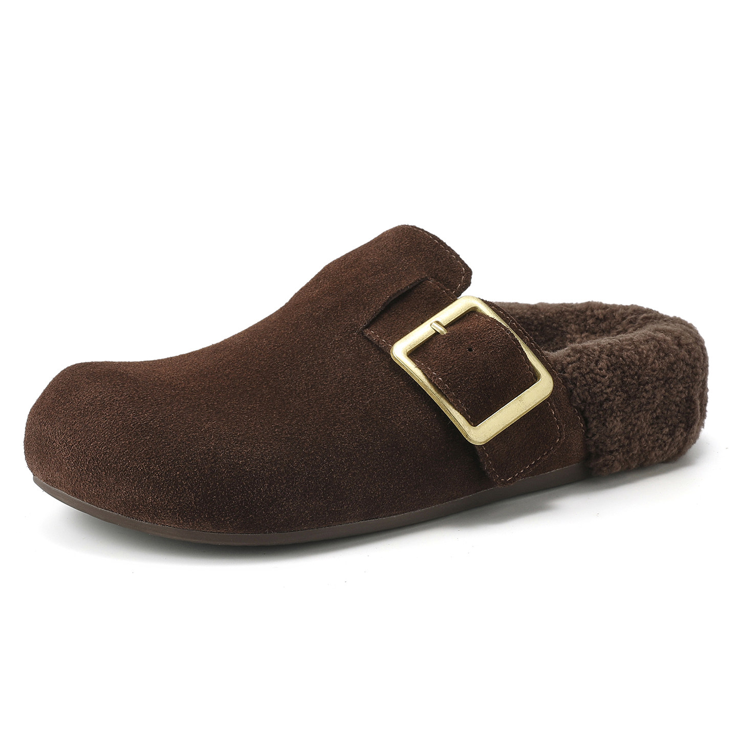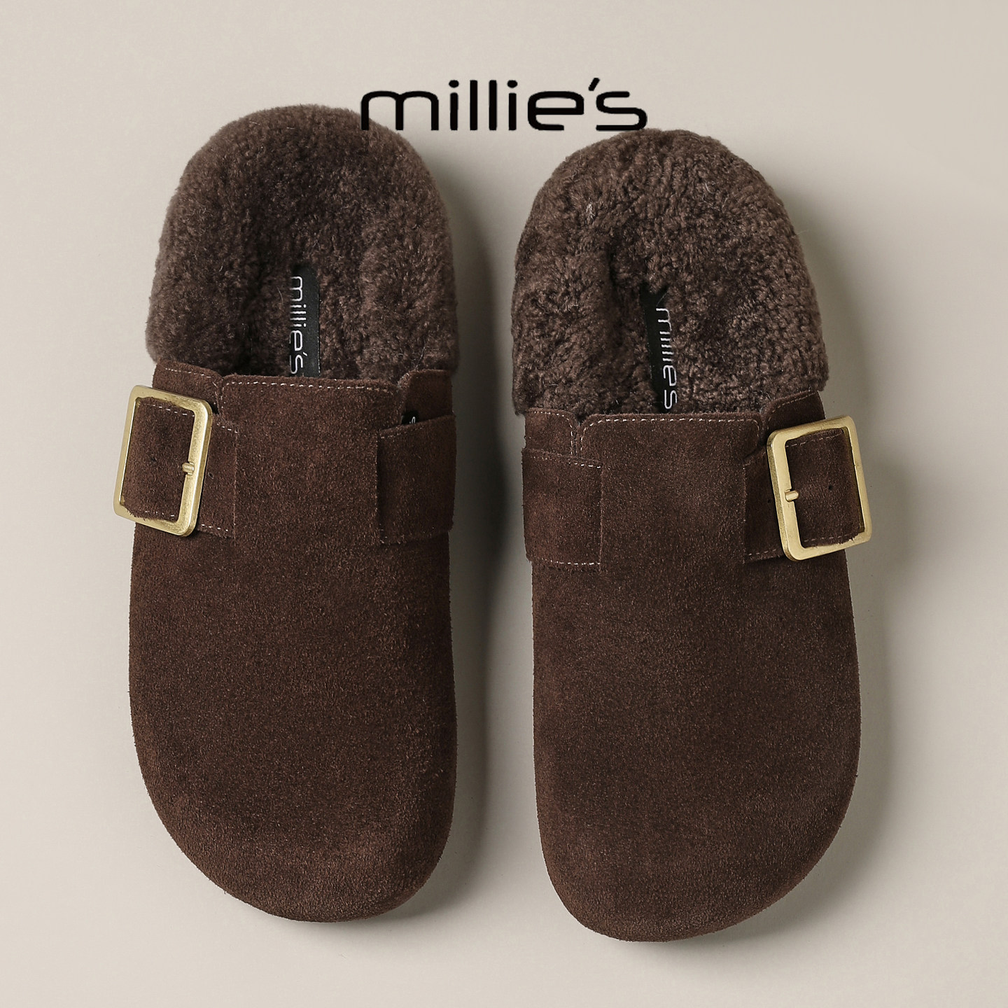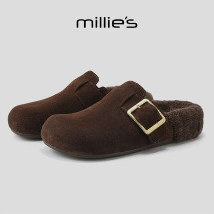 MILLIE'S/妙丽冬季新款加绒保暖博肯鞋女户外半包拖鞋毛毛懒人鞋