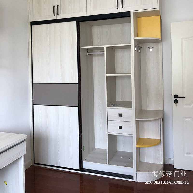 上海现代简约衣柜移门哑光E0级板材衣帽间榻榻米环保型推拉门定制