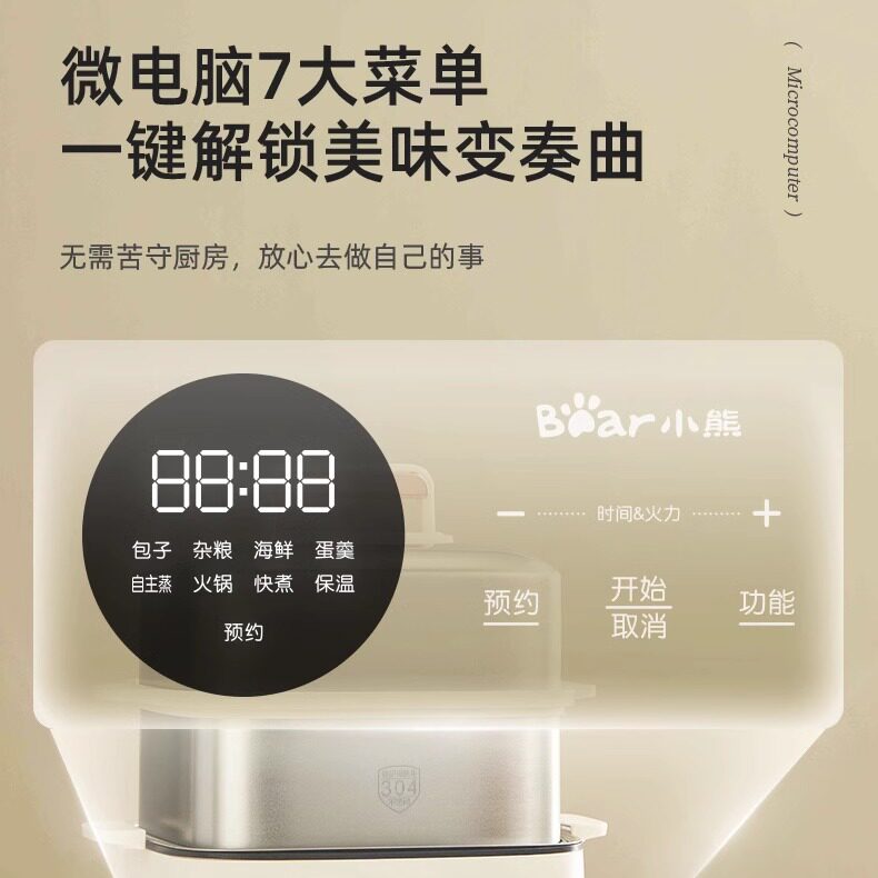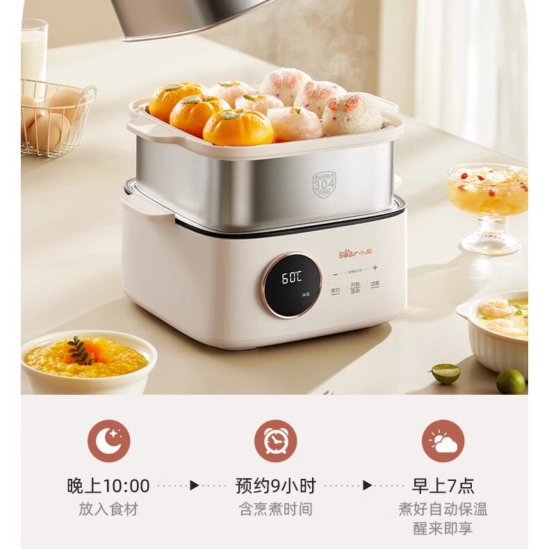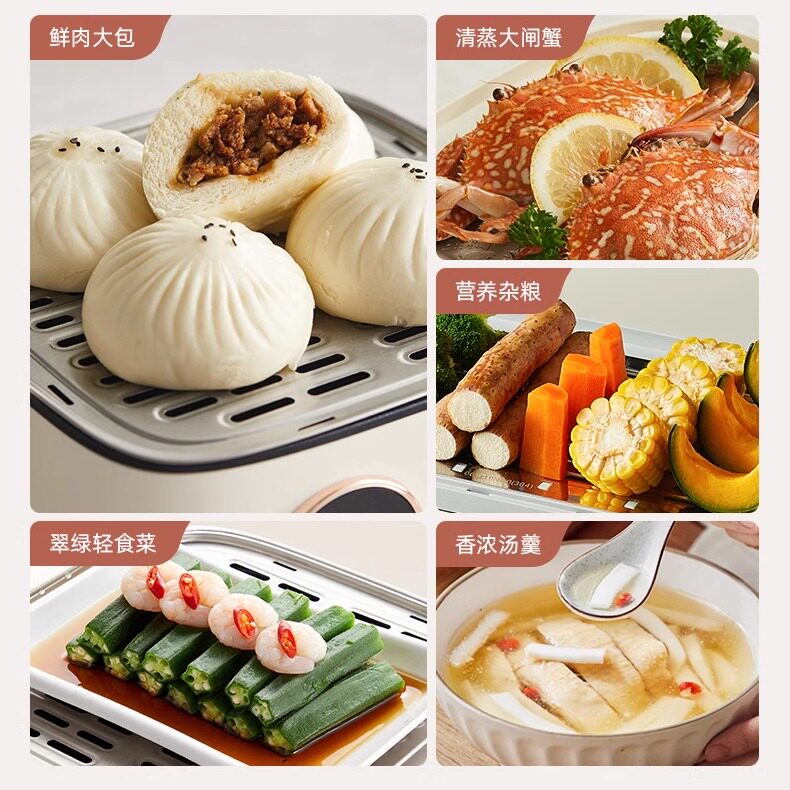 小熊电蒸锅不锈钢多功能家用三层蒸炖一体煮火锅早餐机蒸笼小蒸箱