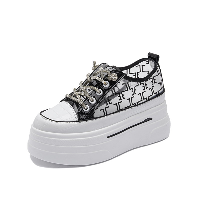 真皮网纱透气内增高小白鞋女8cm夏季休闲老爹鞋懒人厚底运动凉鞋