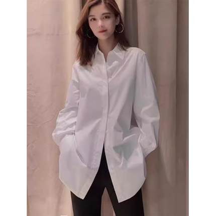 阿玛施正品2025秋季新款宽松男友风中长款大白衬衫女上衣5300701