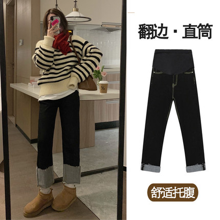 孕妇裤子春季薄款直筒牛仔裤春秋款外穿小个子打底长裤女孕妇春装